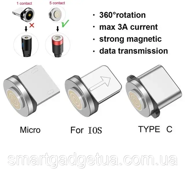 -32%Конектор магнітний тип Lightning, Type-C або Micro-USB 5 Pin / Конектор-адаптер для кабелю магнітного 1шт