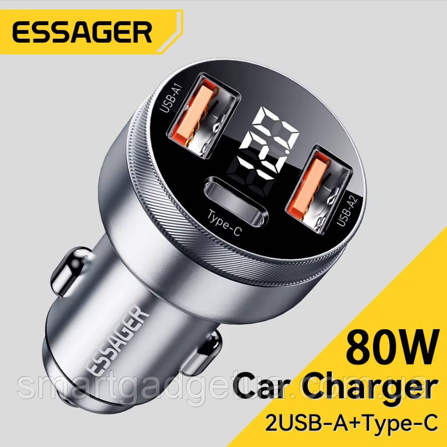 Автомобільний зарядний пристрій Essager ES-CC10 80W з дисплеєм – швидке та універсальне рішення для зарядки в автомобілі